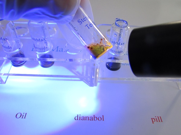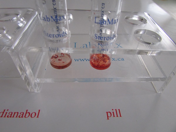 Although the red transparent color in both vials is very characteristic for dianabol, the results will not be complete without UV test.